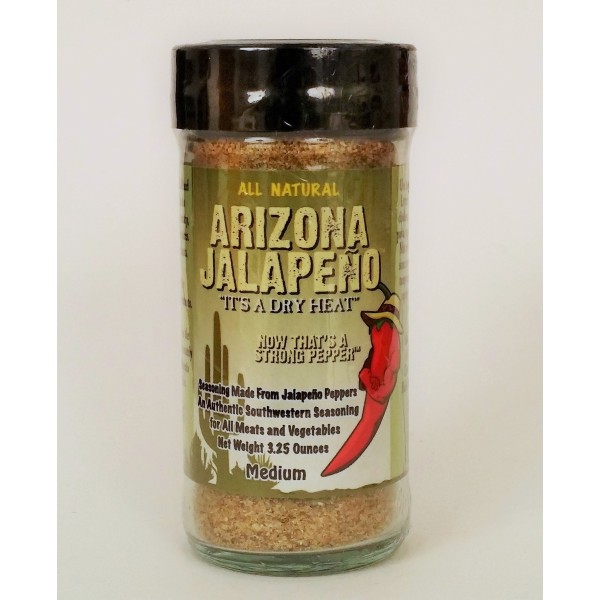 ARIZONA JALAPEÑO - This medium flavored seasoning packs a bunch in such a little bottle. Use on just about anything that you want to kick up a notch or two. Keep in mind that the more you add the hotter it gets. This bottle will last a long time with regular use. This is a seasoning blend that is about 95% Jalapeno with a very low salt content.